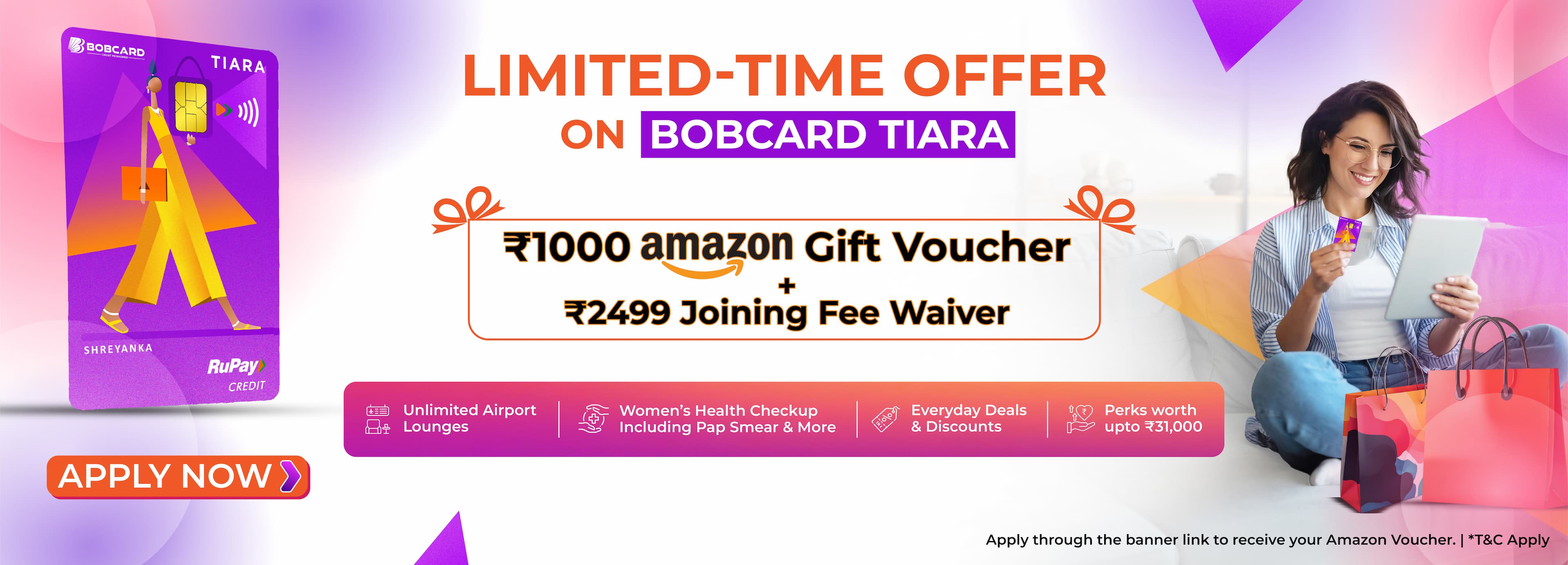 ^Effective 1st Jan, 2025, Complimentary lounge access will subject to minimum spends of Rs 40,000 in the preceding calendar quarter. Visit bobcard.co.in/most-important-terms-and-condition to know Important Terms and Condition.